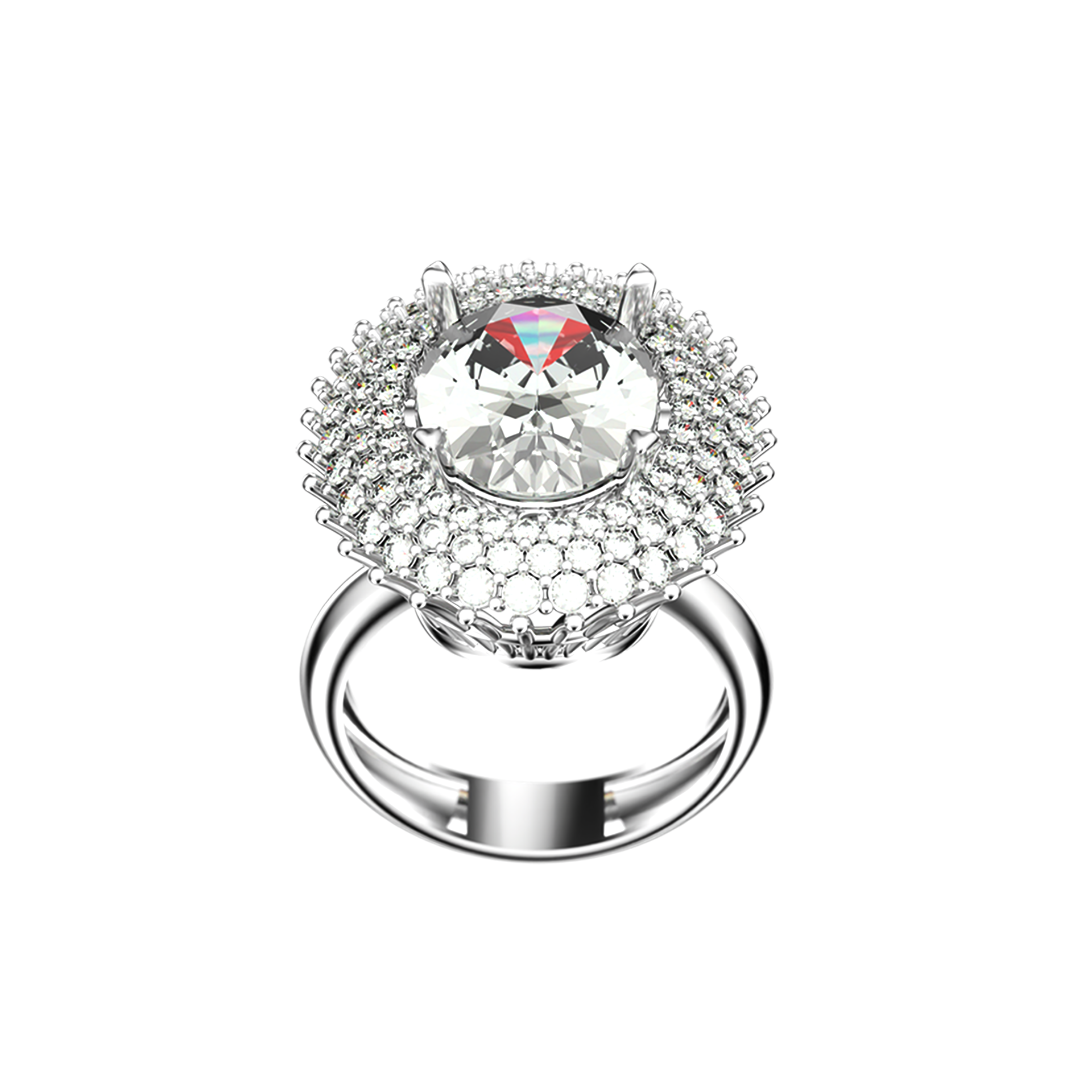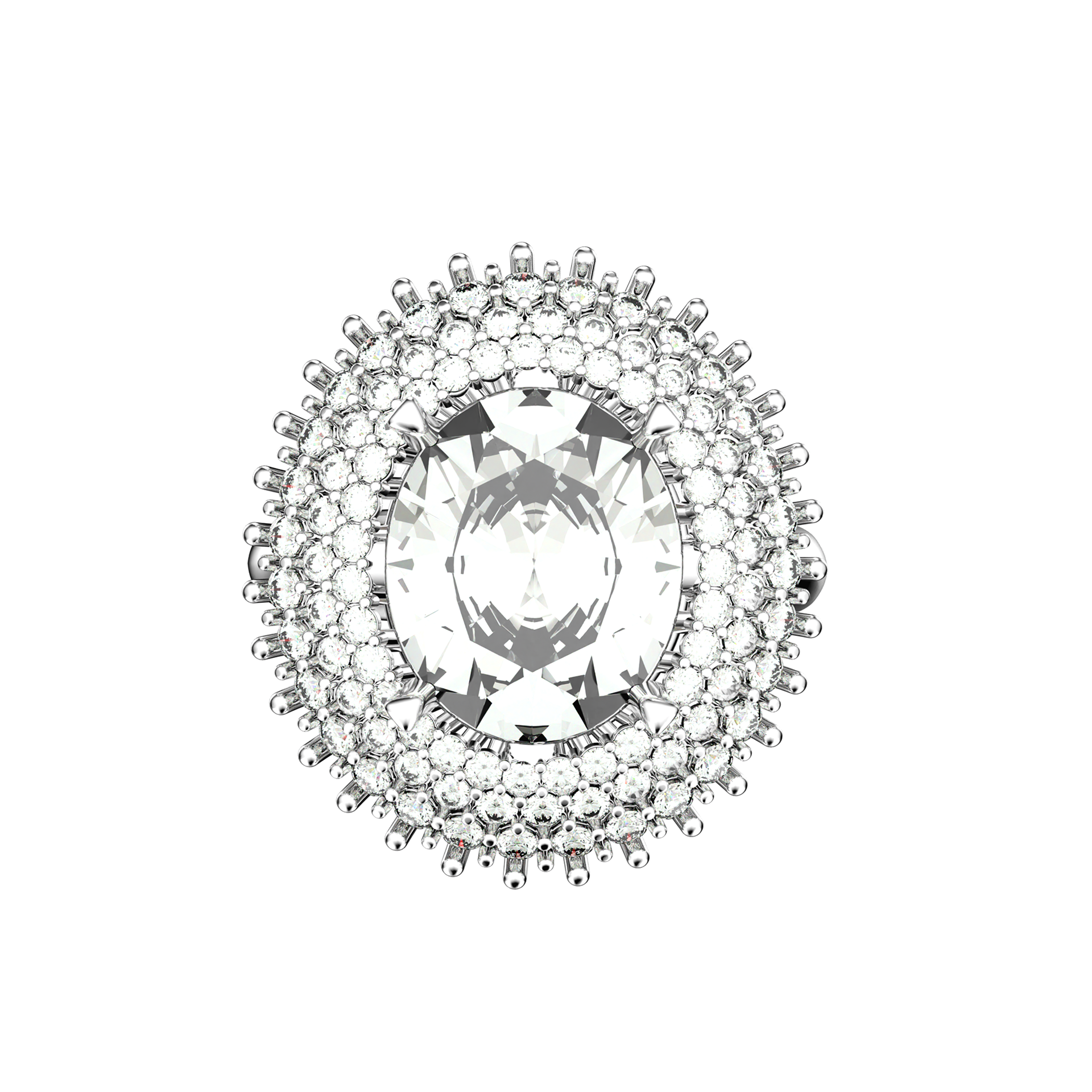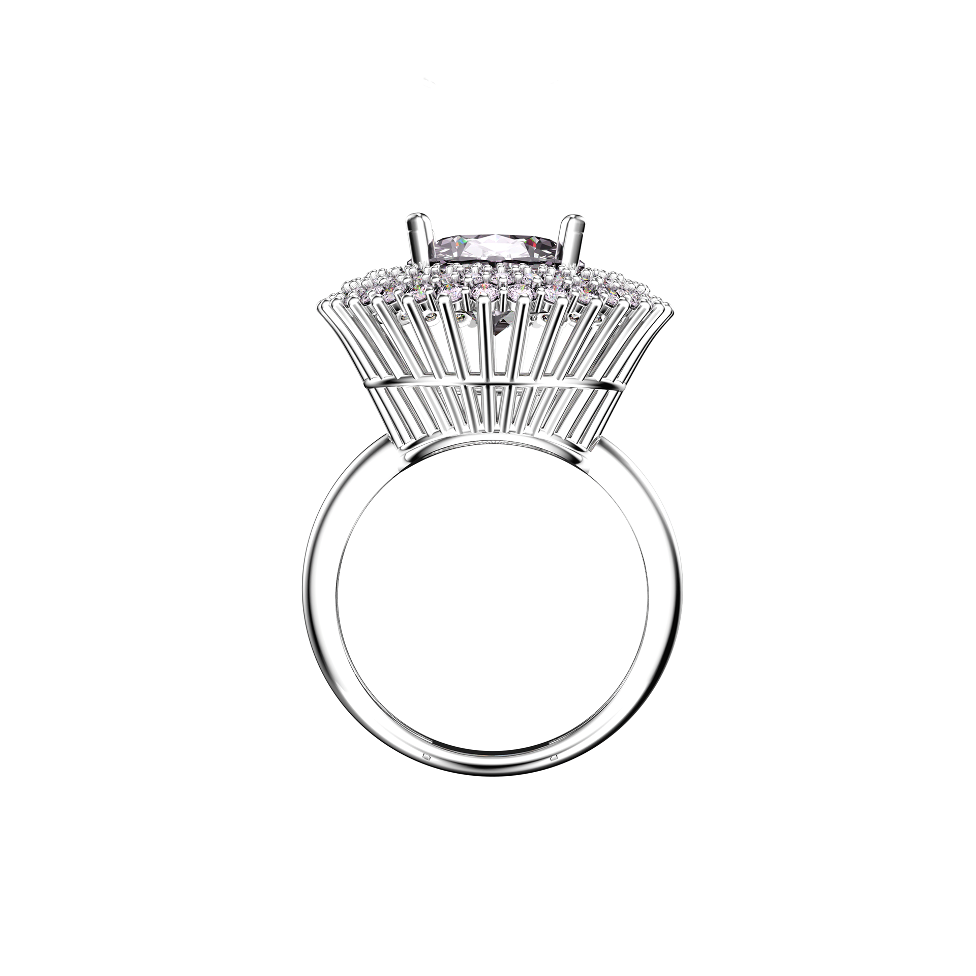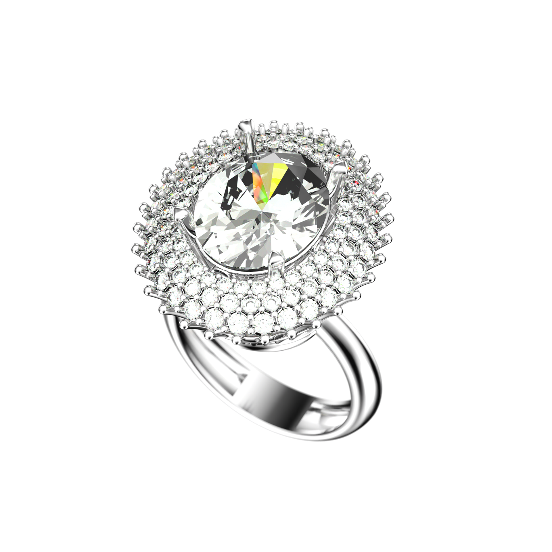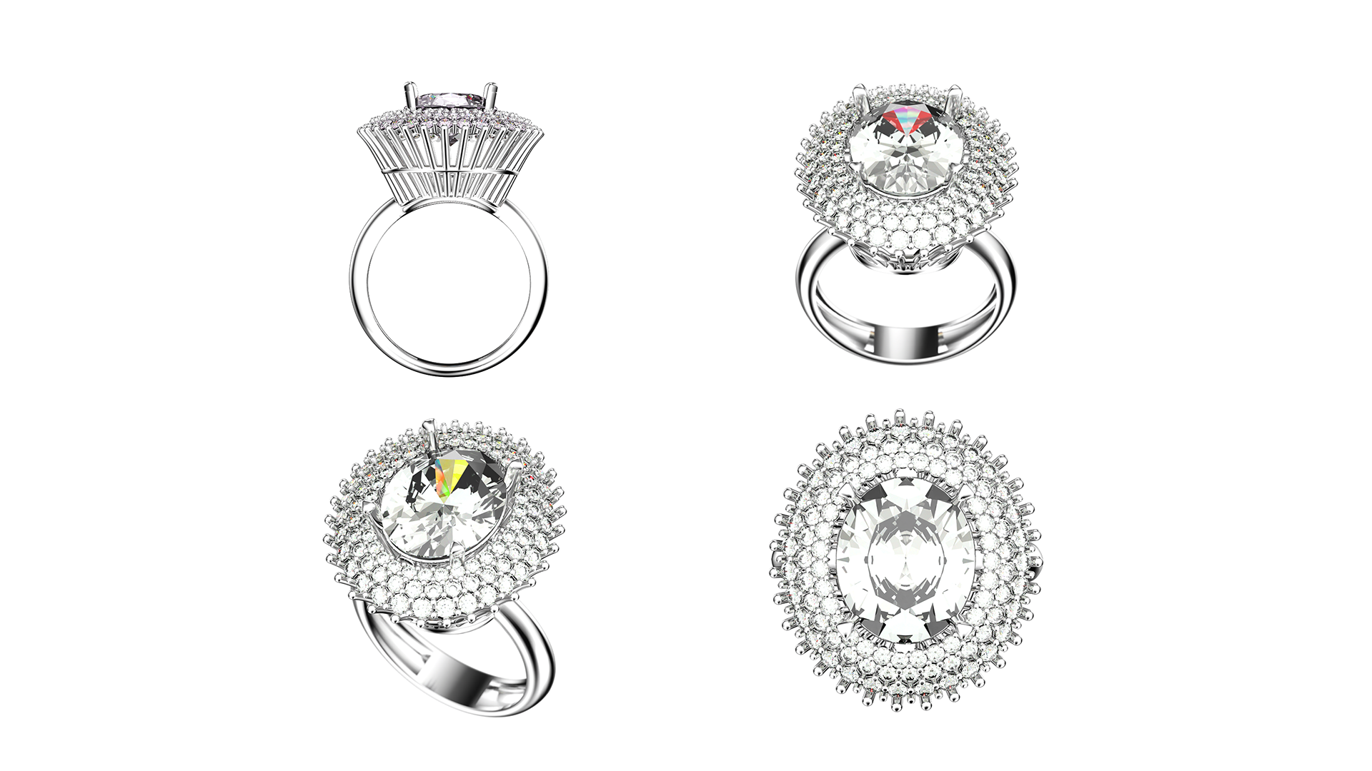 Hyper realistic 3D visualization of a luxury ring featuring an oval cut center stone and pavé setting. A personal project focused on lighting, materials, and jewelry realism.